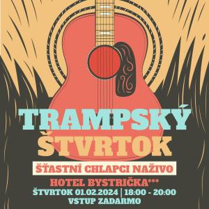 Hotel Bystrička Vás pozýva na Trampský štvrtok, dňa 01.02.2024 od 18:00 - 20:00 hod, kde vystúpia Šťastní chlapci. Vstup zadarmo.