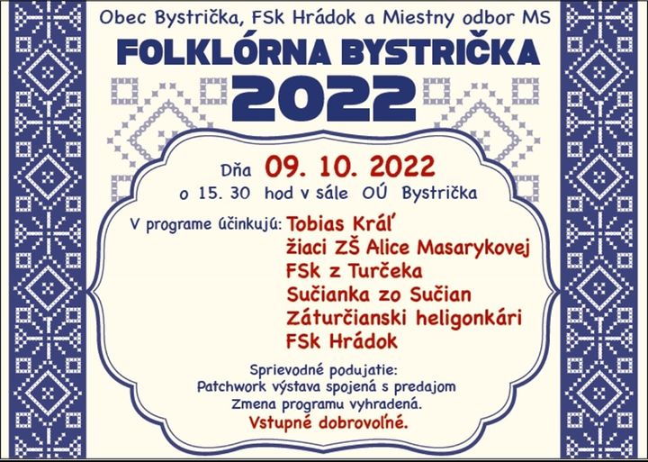 Po troch rokoch Vás opäť pozývame na podujatie, ktoré už má v Bystričke svoju tradíciu