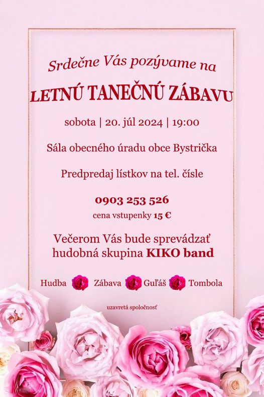 Srdečne Vás pozývame na letnú tanečnú zábavu.